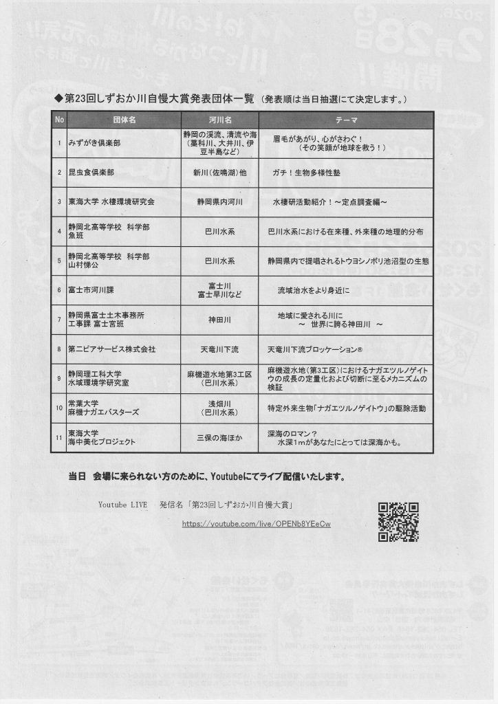新しい発見がいっぱいの「しずおか川自慢大賞」が今年も開催されます。